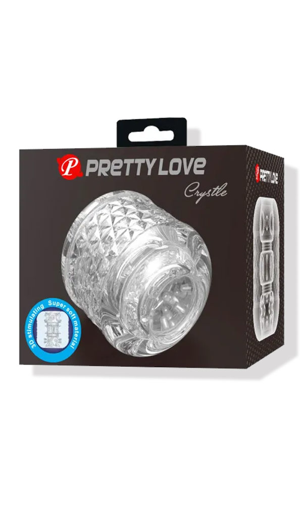 Crystle de la marque Pretty Love. Une gaine de masturbation transparente, compacte et très stimulante.