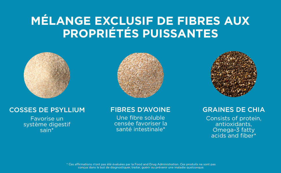 UNE CONFIANCE PROPRE: Lorsqu'ils sont pris avec de l'eau, les enveloppes de psyllium, de graines de chia et de lin spécialement formulées s'unissent pour hydrater et former une masse molle mais solide. Cela fonctionne un peu comme une éponge nettoyant derrière vos repas.